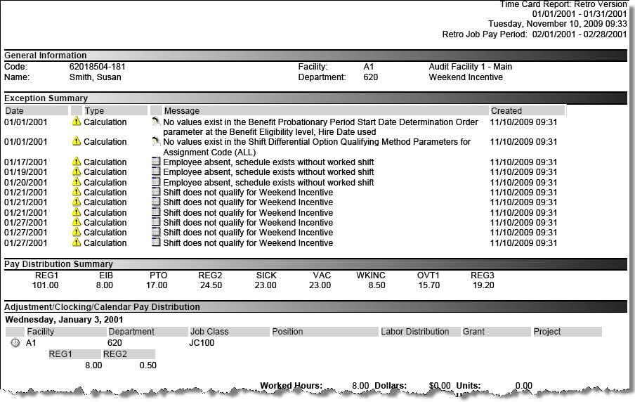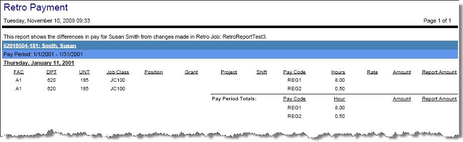 This report is an exact replica of the Time Card Report but contains the Retro data for the particular pay group instance.