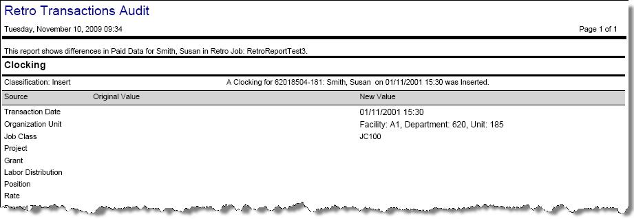 This report contains an audit list for the transactional changes made in the Retro Job.