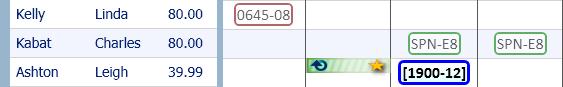 In the schedule grid, an icon displays on the days that employees have a Schedule Incentive request. When a Schedule Incentive record is checked in the Requests grid, the icons of all employees submitting bids for that record are highlighted with a dark border in the schedule grid