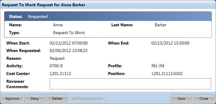 In the Reviewer Comments field, enter any notes regarding this request, for example, the reason this request was approved or denied.