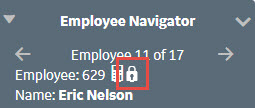 A lock icon to the right of the employee number indicates the employee's time card information is being reviewed and the supervisor has applied a lock. Point to the icon to display a tooltip indicating the user who enabled the lock.