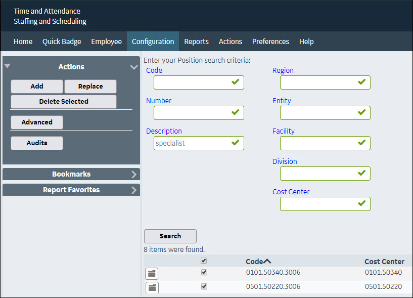 The Records are the individual items contained within a screen. For example, in the Position screen are listed all the position records stored in the system. By entering search criteria, the number of records listed is reduced to make it easier to locate the desired record.